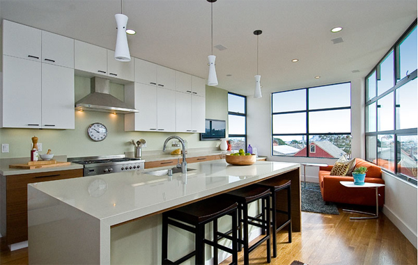 A San Francisco Planning Department designed exterior couldn’t destroy the light-filled exuberance of this spec remodel and third floor addition.