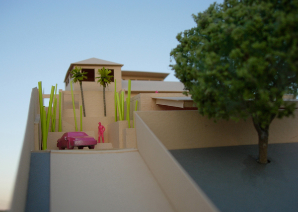 Providing an area to park and turn cars around on this hillside lot dovetailed with a master bedroom addition further up the hill.